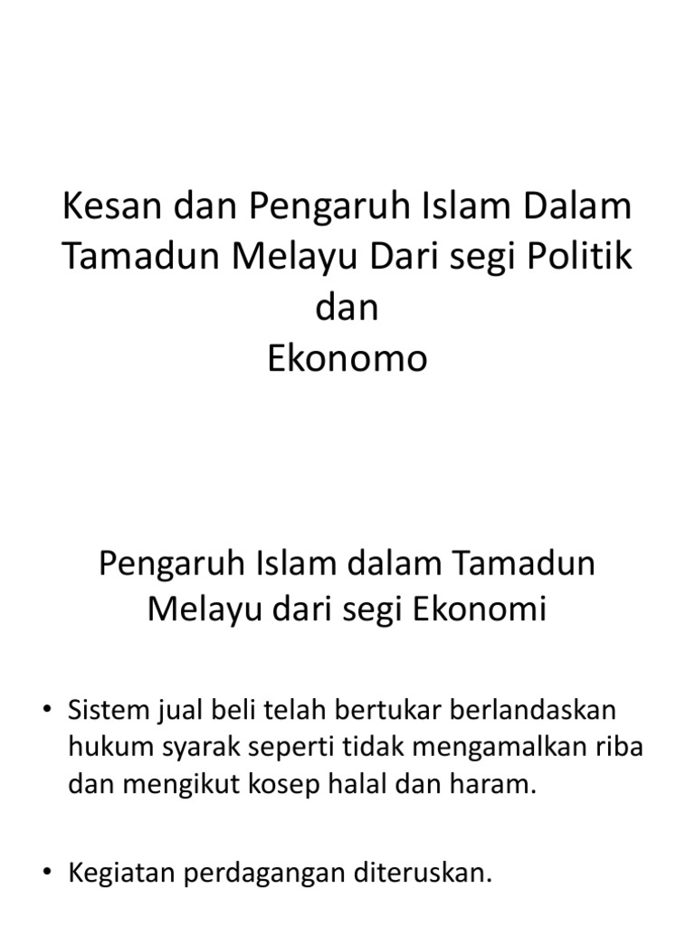 Islam Liberal adalah satu fahaman sesat yang berpunca dari sifat tidak yakin dirimerasa rendah diri inferiority complex dan mengagung-agungkan gaya pemikiran Barat oleh segolongan orang Islam. Tamadun Melayu semakin mantap dengan kedatangan Agama Islam dan kewujudan adat istiadat Melayu Berlaku proses Islamisasi di Alam Melayu SUBJEK. Ikhtisar Perkembangan Islam halaman 542 12 KESAN ISLAM TERHADAP TAMADUN MELAYU iv Penubuhan institusi-institusi islam bagi melicinkan lagi urusan pentadbiran islam dalam kegiatan dakwah pelajaran berjual-beli dan sebagainya Berikutan dengan tertegaknya pemerintahan yang berlandaskan undang-undang atau ciri-cirl Islam ia telah memberi.