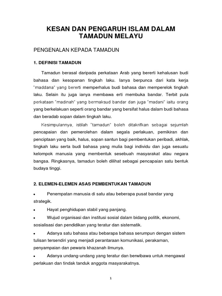 Kesan Dan Pengaruh Islam Dalam Tamadun Melayu Sosial Dan Budaya Pdf